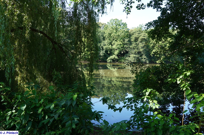 Wir überqueren die Hauptstraße und fahren nach dem Bahnviadukt geradeaus den Waldweg weiter. Nach 600 m gabelt sich auf einer Lichtung der Weg, hier halten wir uns rechts, kreuzen nach 200 m die Beckerstraße und fahren geradeaus den Fahrweg in den Stadtpark.