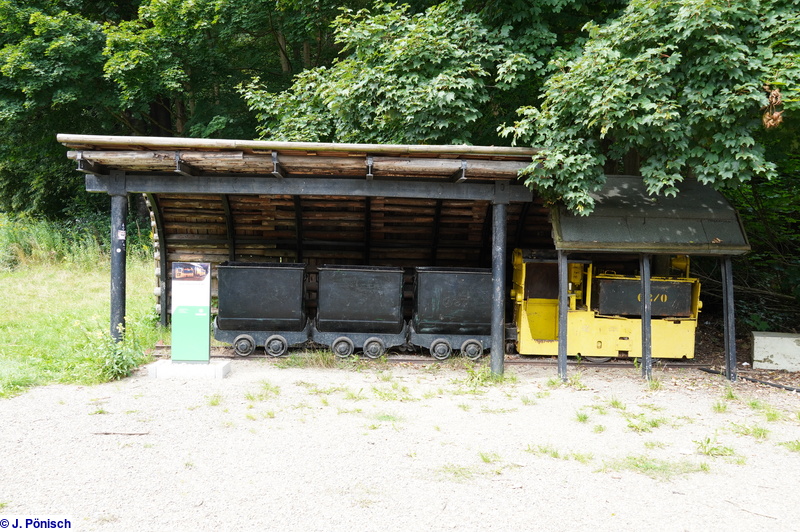 Der Weg mündet nun wieder in eine Straße, die uns nach 200 m zu einer Kreuzung bringt. Hier biegen wir links in die Wiesenstraße. Nach 200 m müssen wir die Brücke nach rechts überqueren und links in die Waldstraße biegen. Diese geht bald in einen Waldweg über, dem wir hinab ins Muldental folgen. Nach 1 km erreichen wir eine Waldwegkreuzung. Wir fahren rechts zum Parkplatz hinab und links in die Talstraße (nach rechts gelangen wir zu Schloss und Burg Stein). Dieser müssen wir nun 2 km folgen. Hier können wir einen Abstecher zur Prinzenhöhle (Einkehrmöglichkeit) oder zum Schacht 371 (ehemals tiefster Schacht der Wismut) machen.
