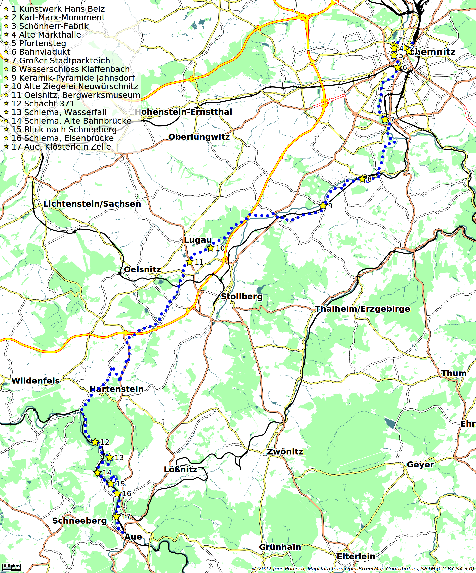 Karlsroute, Abschnitt Chemnitz–Aue (51 km)¶